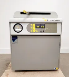 The Priorclave PS/QCS/SV100 is a top-loading autoclave designed for laboratory sterilization processes. This unit was previously used in a university laboratory and is no longer required. It powers up but requires an external steam generator for comprehensive functionality, which is not included. The unit is in good cosmetic condition with some minor marks indicative of prior use.
