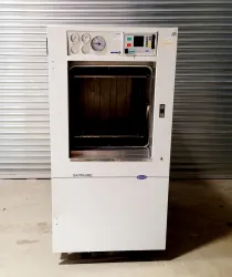 This autoclave was extracted from a university lab where it was deemed surplus. While there is some cosmetic wear, such as a dent on the roof and side panel, the prior user confirmed it was functioning properly before removal. The unit requires a 63-amp plug to operate.