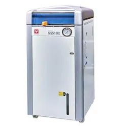 High performance, easy operation and ergonomically designed 50L large capacity steam sterilizer featuring easy top loading and handling of samples. Maximum sterilizing temperature goes up to 135°C suitable for protein modification. By simple setting and operation, this sterilizer manages ordinary sterilization, sterilization of culture mediums and liquids, and melting of culture mediums. Custom programs can be saved for repeated use. Standard equipped with timer start and pre-heating features for efficient use of time and cooling fan to shorten cool down time. Mobile on wheels. Operating temp. range 45 to 135°C.