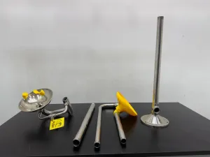 This emergency safety shower unit is engineered for rapid eye and body decontamination in laboratory and industrial environments. Constructed with stainless steel components, including the shower head and piping, the unit ensures corrosion resistance and durability essential for reliable safety compliance. The integrated eyewash bowl features yellow protective covers to prevent contamination and maintain hygiene between uses. Designed for straightforward assembly, the unit includes all necessary piping components fabricated from stainless steel to withstand demanding conditions.