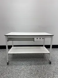 This mobile laboratory workstation is designed to enhance workspace flexibility in research and clinical environments. Constructed with a sturdy white frame, it features: