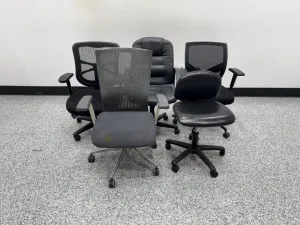 This set includes five rolling office chairs designed for laboratory and office settings. These chairs feature: