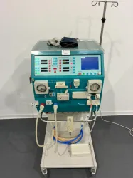 The Gambro AK-200 Ultra S is a technically advanced dialysis machine designed for clinical and biotechnological applications in renal replacement therapy. Manufactured in 2011, this hemodialysis system operates at 230V power supply with a frequency range of 50/60 Hz and a power consumption of 2250W, ensuring consistent and reliable performance in patient blood purification.