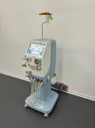 The Gambro AK-96 is a clinically robust hemodialysis machine engineered for efficient blood purification and renal replacement therapy in medical treatment environments. Featuring an integrated fluid management system and a user interface touchscreen panel, this device allows precise control of dialysis parameters crucial for patient safety and treatment efficacy.