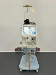 The Gambro AK-96 is a specialized hemodialysis machine designed for renal replacement therapy in clinical environments. It integrates an advanced blood pump and a user-friendly control panel to ensure precise blood flow management during dialysis procedures.