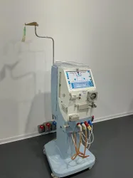 The Gambro AK-96 is a technologically advanced hemodialysis machine designed for clinical dialysis treatments. Manufactured in 2012, this system operates at 230V and supports a frequency of 50/60 Hz, with a power consumption of 2028W. It incorporates an integrated blood pump and a comprehensive fluid management system, ensuring precise control of dialysis parameters essential for patient care in nephrology and molecular diagnostics.