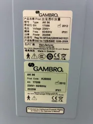The Gambro AK-96 is a hemodialysis machine engineered for clinical renal therapy applications, featuring an integrated blood pump and dialysate management system. Developed for efficient and precise hemodialysis treatments, it offers a user-friendly interface to optimize workflow in healthcare settings.