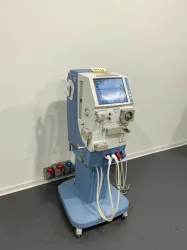 The Gambro AK-98 is a clinical-grade hemodialysis machine engineered for reliable renal replacement therapy and bioprocessing fluid management in medical and biotechnology environments. Featuring an integrated touchscreen control panel, it allows precise regulation of blood and dialysate flow rates essential for stable molecular diagnostics and biomanufacturing applications.