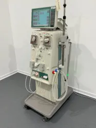 The Nikkiso DBB-07 Hemodialysis Machine is a clinical-grade system designed for precise renal replacement therapy in various treatment settings. It features an integrated touchscreen control panel that allows accurate adjustment and monitoring of dialysis parameters, facilitating efficient operation by clinical staff.