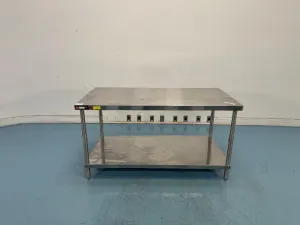 The Aero 5' Stainless Steel Table is a robust laboratory workbench designed for equipment support and sample preparation tasks in biotechnology, molecular diagnostics, and clinical laboratory settings. Constructed from high-grade stainless steel, it ensures corrosion resistance, easy sanitization, and durability for demanding workflows. Ideal as laboratory furniture in bioprocessing, synthetic biology, and biomedical engineering, the table supports organized setups essential for gene editing and biomanufacturing applications. The 5-foot length provides ample workspace compatible with cleanroom environments, facilitating efficient molecular cloning workflows and fluorescence analysis procedures. This stainless steel laboratory work table is widely adopted in research institutions requiring hygienic, sturdy surfaces for live-cell imaging and neuroimaging applications.