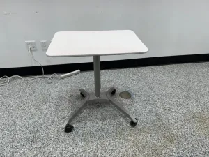 This portable laboratory desk is designed for flexible workspace arrangements in research labs, clinical diagnostics, and biotechnology facilities. Featuring a sturdy, height-fixed central metal column and a stable four-legged base equipped with caster wheels, it enables smooth mobility across diverse floor surfaces without compromising stability. The compact, rectangular white laminate surface provides sufficient area for laptops, notebooks, or light laboratory equipment, supporting bioprocessing and molecular biology workflows. Lightweight and durable, this mobile workstation facilitates rapid reconfiguration of lab spaces critical in dynamic environments such as gene editing, synthetic biology research, and biomanufacturing. Its ergonomic design ensures convenient transport and long-lasting use, making it a useful asset for temporary workstations and collaborative biomedical engineering setups.