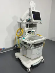 The GE Datex-Ohmeda Aisys CS2 anesthesia machine is a sophisticated anesthesia delivery system widely used in clinical settings and surgical suites. It features an integrated touchscreen display for intuitive system navigation and control, enabling precise management of anesthesia delivery. The system supports both manual and automated ventilation modes, providing versatile respiratory support tailored to patient needs.