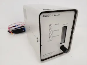 The Applied Biosystems MDS Sciex Photospray Control Unit, Assembly No. 028857, is a vital component for precision in laboratory mass spectrometry applications. Originating from a university lab setting, it was deemed surplus to requirements and is available in a fully operational state. The unit is powered on and exhibits a reasonable cosmetic condition expected from prior use. This control unit facilitates high-performance analysis, ensuring accuracy and reliability in your research endeavors.