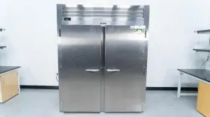 The Traulsen RRI232LUT-FHS is a stainless steel roll-in refrigerator designed for bulk refrigeration storage in laboratory environments. This model features a 68-inch height and a spacious 74.3 cubic feet capacity divided into two sections, ensuring ample space for storing temperature-sensitive biological samples and reagents essential in molecular diagnostics and bioprocessing workflows. Constructed from durable all stainless steel, it meets stringent hygiene standards required in clinical diagnostics and biotechnology laboratories. The solid door design provides reliable thermal insulation critical for maintaining consistent cold storage conditions in synthetic biology and biomanufacturing applications. Ideal for labs requiring robust, large-scale cold storage solutions, this refrigerator supports temperature stability and ease of accessibility for samples used in live-cell imaging and other advanced biomedical research. Its roll-in feature allows compatibility with standard laboratory carts and racks, enhancing workflow efficiency in cell imaging and molecular biology research environments.