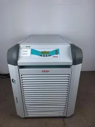 This listing offers 1 of the 2 available Julabo FL1201 Recirculating Coolers, both in excellent working condition and ready for immediate deployment. The FL Series recirculating coolers are engineered for a variety of cooling tasks, offering up to 20 kW of cooling capacity. Key features include easy top-side filling, a feed pressure indicator and level indicator (beginning with model FL1201), and a substantial compensation volume. The unit supports a permissible return temperature up to +80 °C and can be used with various liquids including water, water-glycol, and thermal bath fluids. Order No: 9 660 003. Model: FL1201. Operating temperature range is -20 to +40 °C with temperature stability maintained within ±0.5 °C. The pump offers a flow rate of 23 l/min at a pressure of 1 bar, and the filling volume ranges between 12 to 17 liters. The dimensions of the unit are 50 cm in width, 76 cm in length, and 64 cm in height.