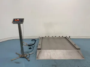 The Sartorius IFS4 Floor Scale is a heavy-duty industrial weighing system designed for precision measurement in demanding environments such as biotechnology laboratories, manufacturing, and logistics. Featuring a large stainless steel platform with integrated side ramps, it enables easy loading and efficient handling of heavy materials. The scale includes a separate digital indicator console with clear, accurate readouts and user-friendly controls, supporting multi-voltage input to accommodate varying facility power standards. The integration of a Zebra GK420d direct thermal label printer enhances workflow by enabling immediate on-site labeling and documentation, essential for bioprocessing, molecular diagnostics, and biomanufacturing applications. This floor scale is critical for environments requiring robust, reliable weighing solutions for heavy and bulk materials, widely adopted in clinical diagnostics and synthetic biology research workflows.