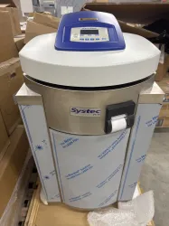 The Systec VX-95 is a robust autoclave sterilizer designed for precise and efficient steam sterilization in laboratory, clinical diagnostics, and biotechnology settings. Manufactured in the United States, this unit weighs approximately 108.86 kg (240 lbs) and features a compact footprint suitable for biomedical engineering environments with limited space.