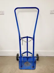 This gas cylinder transport cart, known as a gas bottle sack trolley truck, was previously utilized in a university laboratory. It remains in reasonable condition, providing a functional solution for securely moving gas bottles around the laboratory environment.