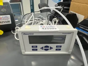 The PendoTech PressureMAT Pressure Meter is a precision instrument designed for accurate pressure measurement in laboratory and industrial environments. It features a clear digital display and a user-friendly interface with control buttons, enabling straightforward operation during pressure monitoring tasks. The unit comes configured with essential pressure tubing for reliable fluid or gas pressure sensing.
