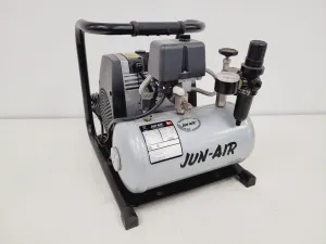 The Jun-Air Oil-Free Piston Air Compressor OF301-4B is a dependable and efficient solution for laboratory applications. Previously employed in a university lab, this unit became surplus to requirements. It powers up flawlessly and is in working order, complete with a user manual. The compressor is in good cosmetic condition with only minor markings, ensuring it maintains its professional appearance while providing low-noise operation suitable for sensitive environments.