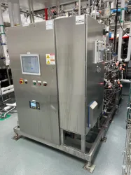 The GEA CFI-100-01-472 Process Centrifuge is a robust industrial disc stack centrifuge engineered for reliable and efficient separation in biotechnology and fermentation processes. Featuring a stainless steel construction, it ensures durability and corrosion resistance essential for demanding bioprocessing applications. The centrifuge is equipped with advanced control systems that optimize separation performance, making it critical in molecular diagnostics, biomanufacturing, and synthetic biology workflows. Its design supports continuous operation in biopharmaceutical production pipelines, enhancing throughput and process stability. This centrifuge is widely adopted in industrial fermentation, live-cell separation, and complex biomolecule isolation, providing precise separation crucial for gene editing and bioprocess optimization in biotechnology research and manufacturing environments.