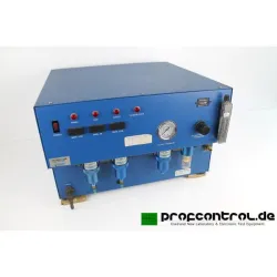 The BALSTON Clean Air Package Model 74-5021-220 is a robust, compact compressor system engineered to provide clean airflow of 14 liters per minute at a working pressure of 7 bar. This system integrates an air dryer and a CO2 separator, ensuring a pressure dew point of -70°C and filtering down to 0.01 µm absolute. It features an adjustable and controllable output pressure, complete with a manometer for precision settings. The unit requires a 240 VAC / 50 Hz power supply. Manufactured by BALSTON Inc in the USA and produced on 4-7-1994, this device has proven 100% functional with comprehensive testing. Previously utilized in a German government laboratory, it arrives with a manual, certificate of compliance, and maintenance history, though regular filter changes as per BALSTON's manuals are advised to maintain optimal performance.