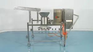 The Glatt GSF 220 Rotor Mill is a specialized rotor milling system designed for precise particle size reduction of wet products following high-shear mixing processes. Equipped with a robust 4 kW motor operating at 480V and 60 Hz, it delivers variable rotational speeds from 120 to 1400 RPM, enabling customizable milling performance tailored to diverse wet material characteristics.