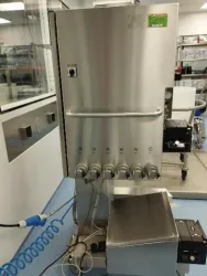 The Cytiva Akta Ready is a compact, automated liquid chromatography system specifically engineered for protein purification and bioprocess development workflows. Featuring a multi-position valve manifold with 6 configurable valve ports, it enables flexible chromatography configurations essential for molecular diagnostics, bioprocessing, and biopharmaceutical production pipelines. The integrated control panel provides precise flow control and an emergency stop button for enhanced operational safety. Mounted on a mobile stainless steel stand with casters, the system supports portability within laboratory environments. This instrumentation is widely adopted in synthetic biology research, molecular cloning workflows, and biotechnology applications involving preparative and process-scale purification. Manufactured in 2021, the Akta Ready supports critical workflows in protein purification, cell imaging sample preparation, and biomedical engineering instrumentation.