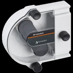 The Heidolph SP Standard Single-Channel Pump Head is a premium piece of laboratory equipment, verified by Heidolph for 100% functionality, that promises exceptional performance and reliability. Despite minor optical imperfections, this outlet instrument is like new and comes with a 12-month warranty. Perfectly suited for standard applications, it offers a reliable flow range of 2.0 to 4,151 ml per minute, depending on the drive and tubing used, thanks to its durable construction, including convex rollers that preserve organic cell cultures from damage. The pump head incorporates ball bearings, with rollers crafted from stainless steel and polyamide, accommodating tubes with a 2.5-mm wall thickness.
