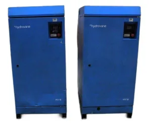 <p> The Hydrovane HV18 is a fixed-speed rotary vane compressor system recognized for its reliability and efficiency. This sale includes two units with an associated tank, conveying comprehensive air compression capacity ideal for industrial applications. The dimensions of the HV18 units are length 35 inches, width 32 inches, height 70 inches, while the tank measures length 132 inches, width 48 inches, height 48 inches. The equipment is in fair condition with minor errors not hindering critical functionality. These compressors are manufactured in the United States, emphasizing quality engineering. Please note, computer and operational software are not included. </p> <br> <b> Key Features </b> <br> <ul> <li> Fixed-speed rotary vane technology </li> <li> Set of 2 compressors with expansive tank </li> <li> Manufactured by Hydrovane, established U.S. brand </li> <li> Suitable for industrial applications </li> <li> Fair condition with minor issues </li> </ul> <br> <b> Specifications </b> <br> <ul> <li> Compressor dimensions: 35" L x 32" W x 70" H </li> <li> Tank dimensions: 132" L x 48" W x 48" H </li> <li> Origin: United States </li> <li> Weight: Approximately 2500 lbs </li> <li> Construction: Durable design for industrial use </li> <li> Condition: Fair, with minor cosmetic defects </li> </ul> <br> <b> Weight </b> <br> <p> Imperial: 3000.0 Pounds <br> </p><p> Metric: 1360.78 Kilograms </p> <br> <b> Shipping Dimensions </b> <br> <p> Imperial: 200.4 lb x 96.0 lb x 141.6 lb <br> </p><p> Metric: 509.02 cm x 243.84 cm x 359.66 cm </p> <br> <b> Harmonized Code </b> <br> <p> 8414809090 </p> <br> <b> Harmonized Code Details </b> <br> <p> 8414809090: Air or vacuum pumps, air or gas compressors and fans; ventilating or recycling hoods with a fan, not exceeding 1 Kw; parts thereof. This code is suitable due to the product being an air compressor set. </p> <p></p> <p></p>| make | Hydrovane |