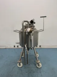 The T&C Stainless Steel Portable Vessel Model TC6359 is a robust mobile vessel designed for versatile processing applications in laboratory and bioprocessing environments. Constructed entirely from stainless steel, this portable vessel features integrated piping and valve systems, ensuring seamless fluid handling and process control. Mounted on a four-legged frame with four caster wheels, it offers enhanced mobility for dynamic laboratory workflows.