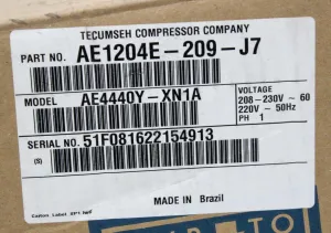 | model | AE4440Y-XN1A Compressor AE1204E-209-J7 |