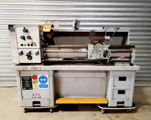 The Jesco Machinery XYZ 1340 Metal Lathe was recently decommissioned from a university setting where it was surplus to requirements. Prior to removal, it was maintained in a working environment and was reported to be in functional condition. Please note that skates are not included with this unit. This model, identified by Serial No.: SH9318, is engineered for precision metalworking and offers robust performance for various machining tasks.