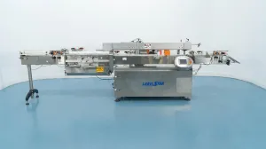 The Kalish LabelStar labeler applies full or partial wrap-around labels to round bottles using a motorized wrap-around system that electronically synchronizes the labeling head speed with container speed.