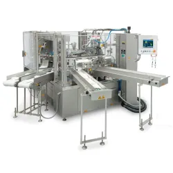 The PSG Lee RD 314 Duplex is a fully automated rotary fill-seal machine engineered for efficient packaging of premade pouches. Featuring a duplex configuration, it processes two pouches per cycle, significantly enhancing throughput and operational efficiency. This machine ensures high-speed filling and sealing with precise control, ideal for applications requiring consistent package integrity.