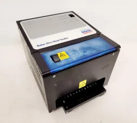 The Qiagen Rotor-Disc Heat Sealer is an efficient instrument, previously utilized in a university lab. It has been verified to power on and reach the required operational temperature. This equipment is in satisfactory cosmetic condition, displaying minor marks from prior use. It is designed to accommodate 36 x 0.2 ml tubes and 9 x 2 ml tubes, making it suitable for diverse laboratory sealing needs.