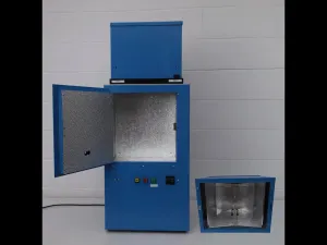 The Honle UVASpot 400T is a high-intensity UV flood light designed for curing resins, testing thermal solar collectors or photovoltaic modules, and material examination including paintings, wood, and walls.