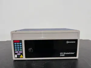 The Stratagene UV 2400 Stratalinker is a laboratory-grade UV crosslinker specifically engineered for the efficient covalent crosslinking of nucleic acids (DNA and RNA) onto nylon or nitrocellulose membranes. It operates using calibrated ultraviolet light at a wavelength of 254 nm, providing reproducible and uniform crosslinking essential for reliable results in molecular diagnostics, gene editing workflows, and biotechnology applications.