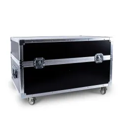 The case is made of 6 mm thick plywood. It features reinforced corners, aluminium trim, and hard dark foam filling.