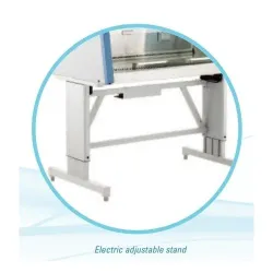 This height-adjustable base by Thermo Scientific is renowned for its electrical control, offering an ideal complement to the Heraguard ECO 1.2 model hood. With a width of 120cm, the base allows for an ECO working height that ranges from 760 mm to 960 mm and can accommodate three preset heights stored in memory. Constructed for reliability, the base exhibits a total height variation from 680 to 880 mm. It features a classic color combination of black and white/gray, adding a sleek touch to any lab environment. The product is delivered in its original packaging, disassembled for convenience, and requires straightforward assembly prior to use.