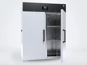 The Pol-Eko KKS 1450 is a double-door environmental chamber featuring a working capacity of 963 L and an overall chamber capacity of 1565 L. It operates within a temperature range of 0 to 60 °C and relative humidity range of 10 to 90%.