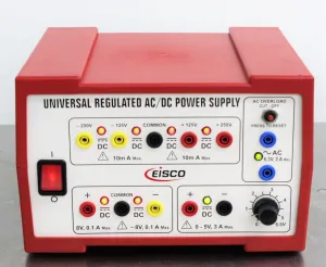 The Eisco ESR-UV 1339 is an adjustable regulated AC/DC power supply designed for laboratory use, offering a wide range of voltage outputs essential for bioprocessing, molecular diagnostics, and synthetic biology applications. Key features include: