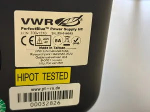 The VWR Perfect Blue Power Supply HC is a precision laboratory power supply unit optimized for a wide range of scientific and biotechnological applications. Featuring a 220V AC input and a 5A fuse rating, this benchtop power supply delivers stable and adjustable voltage outputs essential for molecular diagnostics, bioprocessing, and synthetic biology research workflows. Equipped with a clear digital display and multiple output ports, it allows accurate voltage control and flexible connectivity to support diverse experimental setups in clinical diagnostics and biomedical engineering laboratories. Manufactured by VWR International bvba in 2020, the Perfect Blue model ensures dependable performance and precise power delivery critical in gene editing, cell imaging, and biomanufacturing pipelines. This unit is widely adopted as a reliable power source in laboratory environments demanding consistent voltage regulation and multiple output options.