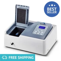 The SCILOGEX SCI-UV1000 is a high-performance UV/Vis spectrophotometer designed for precise quantitative analysis across biotechnology, clinical diagnostics, and material quality control. Featuring dual light sources—Deuterium and Halogen lamps—it covers a broad spectral range of 200 to 1000 nm with a 4 nm bandwidth, ensuring accurate absorbance readings for molecular diagnostics and bioprocessing applications.