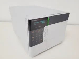 The Shimadzu RF-20A Prominence Fluorescence Detector, a high-performance device used in various analytical applications, was previously part of a university laboratory's inventory. It is in good cosmetic condition, indicating it has been well-maintained. Although the system powers up, further functional testing was not performed at our facility. Importantly, it has successfully completed all of its self-checks upon start-up, verifying its operative reliability. Ideal for detailed fluorescence analysis, this detector ensures precise and dependable results.