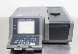The Spectronic Genesys 5 UV/Visible Spectrophotometer is a microprocessor-controlled analytical instrument designed for precise absorbance, percent transmittance, and concentration measurements over a wavelength range of 200 to 1100 nm. Featuring a split-beam optical system with dual detectors, it enhances measurement accuracy by compensating for light source fluctuations, making it integral in biotechnology and molecular diagnostics workflows that require reliable spectroscopic data.