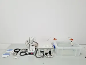 The Bartington MS2WF Magnetic Susceptibility System is available for spares or repair. This system, previously situated in a university laboratory, was deemed surplus and has been checked for functionality. The devices power on and exhibit minimal wear, and the pumps operate correctly. However, an alarm is emitted by the MS2WFP Power Supply Unit. It is important to note that the system is missing the MS2 meter and probe. Consequently, this setup is suitable primarily for spares or repairs.